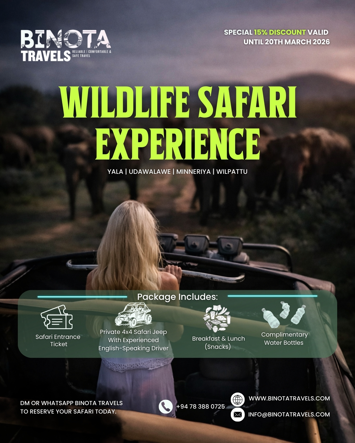 Premium transport, guided safaris and tailor-made travel experiences at special seasonal rates.