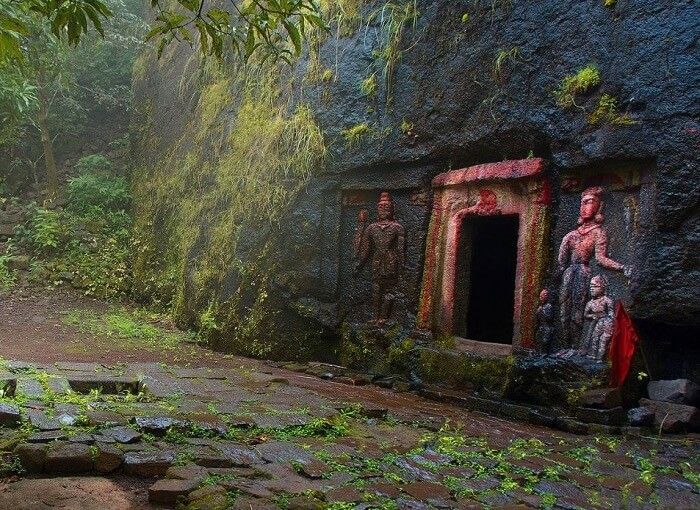 Ancient wall paintings preserved inside the rock.